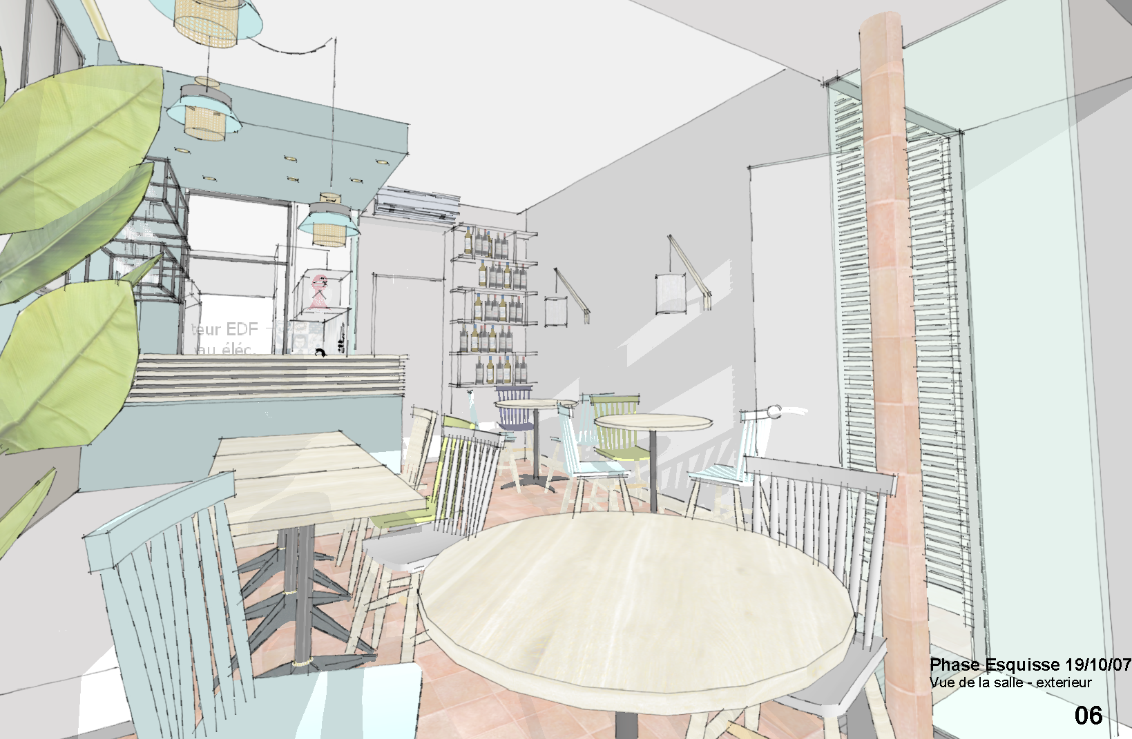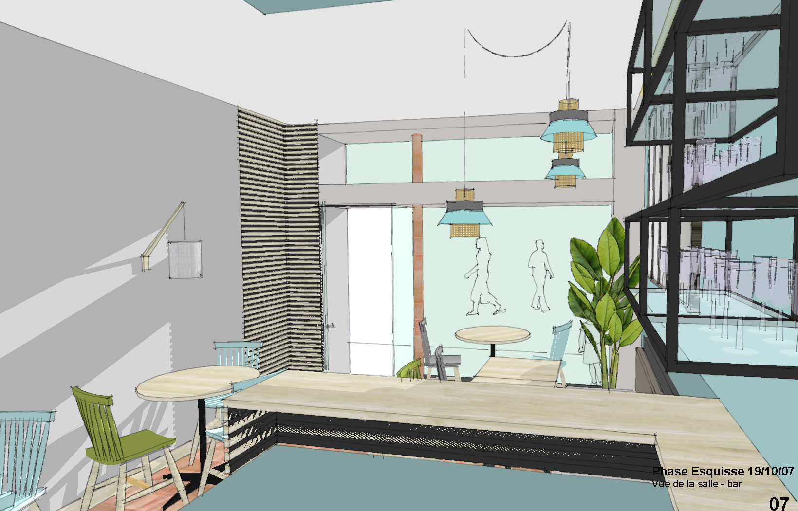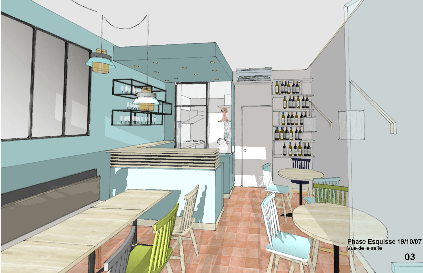 Ce petit local de 28m² bien placé au cœur de ville à Perreux-sur-Marne n’attendait que sa transformation. Nous avons accompagné les futurs restaurateurs dans leur projet d’aménagement complet de la salle, de la cuisine et des locaux annexes. Au final tout est rentré! La salle peut accueillir 16 convives, le bar est fonctionnel, et la petite cuisine optimisée… pas un centimètre de perdu!