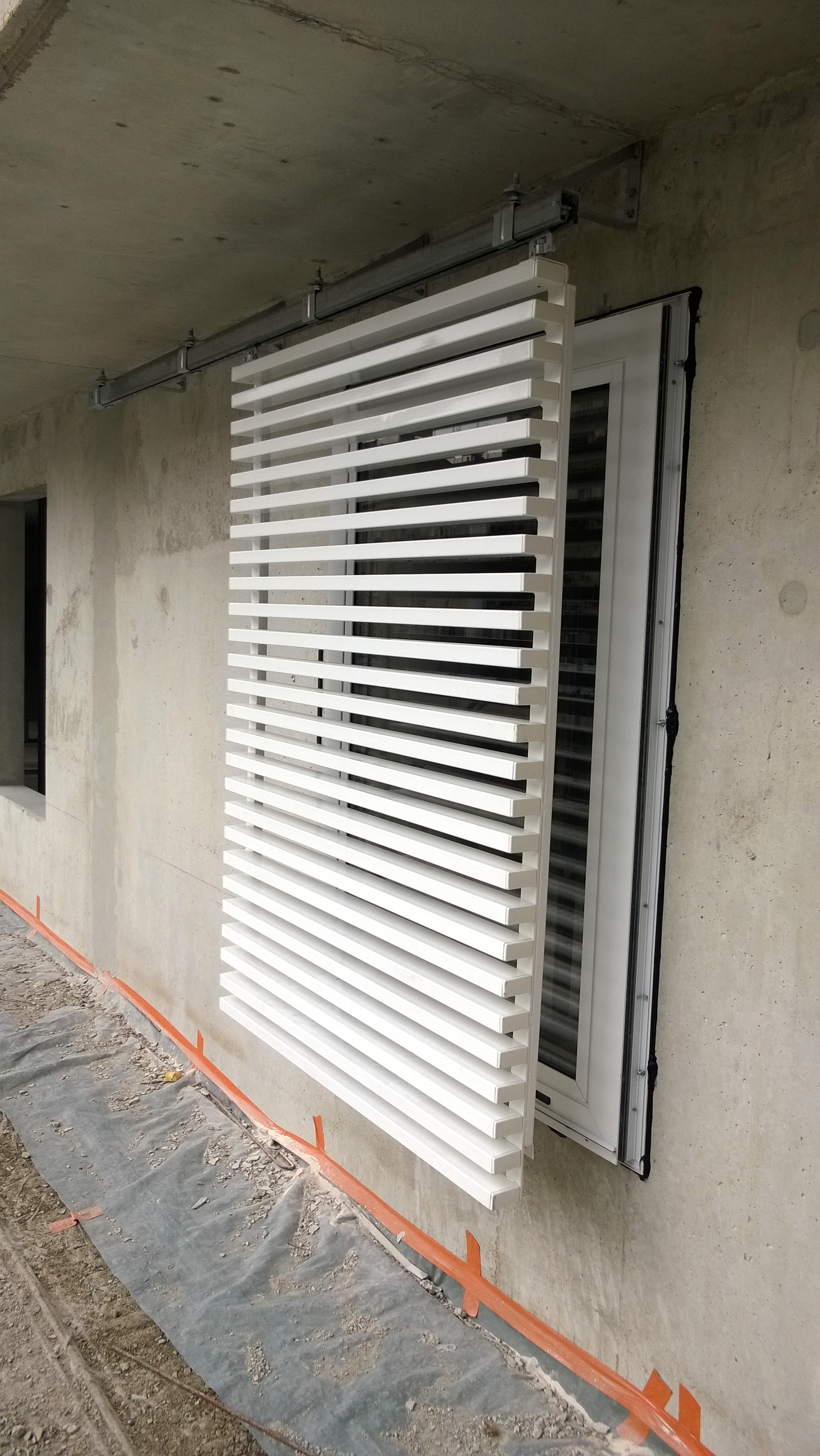 Le corps du bâtiment est animé par les jeux de percements des fenêtres et les persiennes.